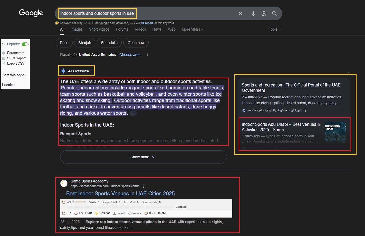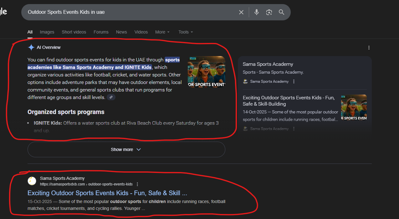 Proven SEO strategies helped this content rank for [indoor sports and outdoor sports in uae] and be featured in Google AI Overview snippets.