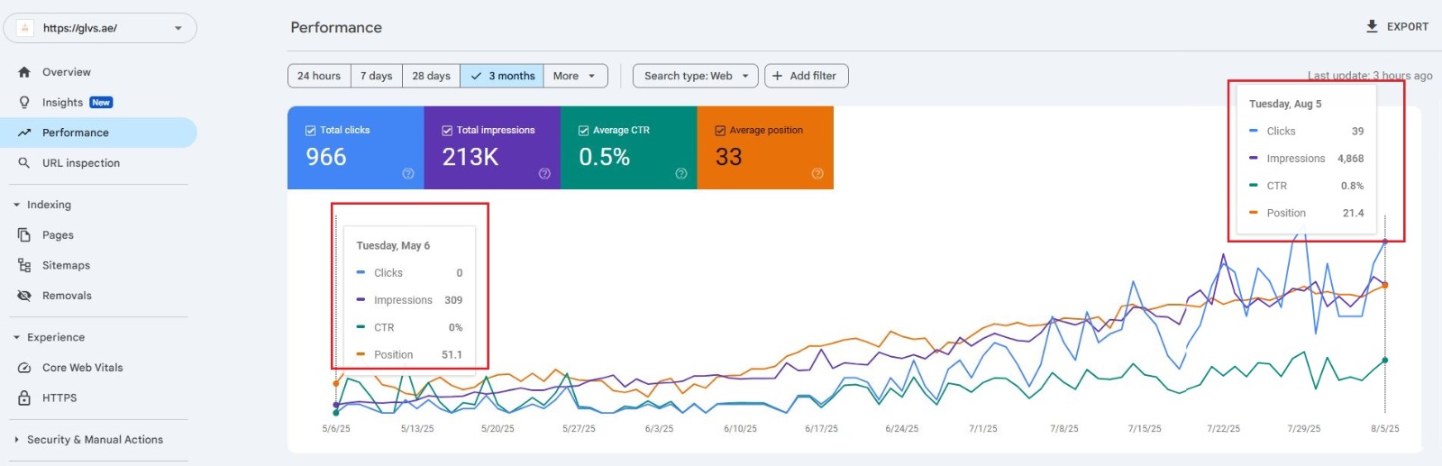 A quick look at how our SEO optimization boosted ranking, impressions, and overall search visibility.