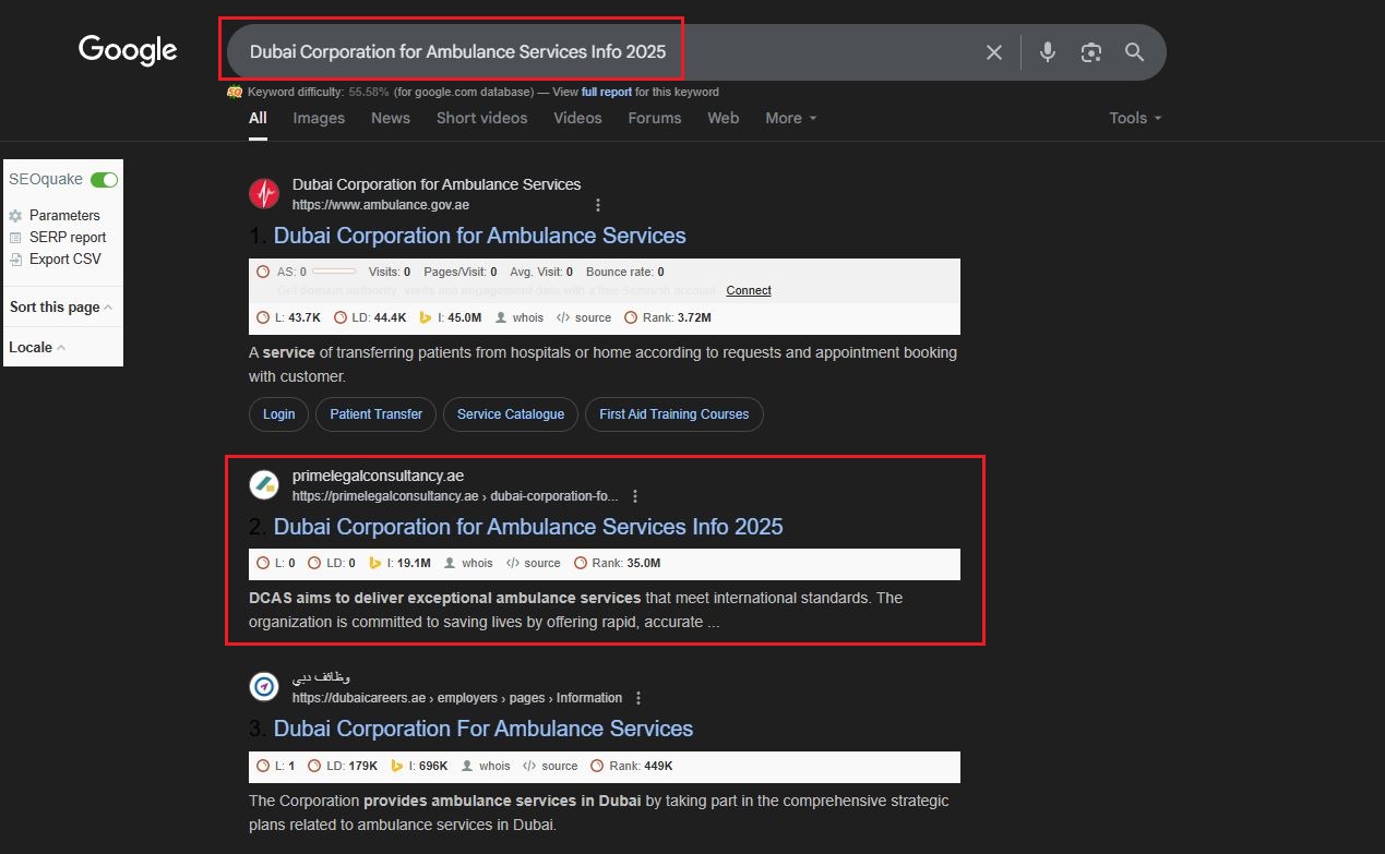 Our optimized approach ensured this page ranks on Google’s first page, improving search visibility and user reach.